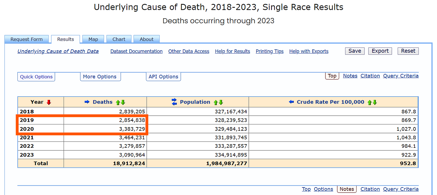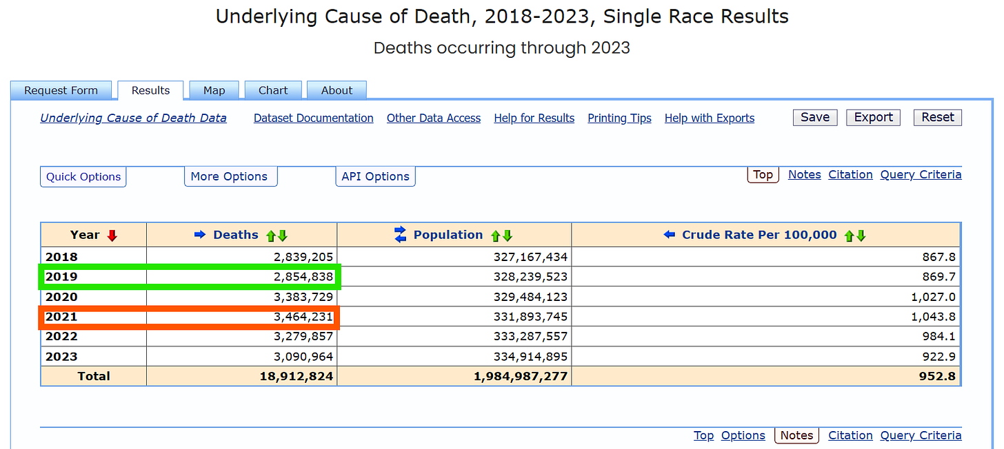 In this episode of my interview with John Beaudoin, we look at the CDC’s mortality data from 2018 to 2023 to find out how many people died in 2020, the first Covid year and the last Covid vaccine free year, and compare those deaths with the ones in 2021.